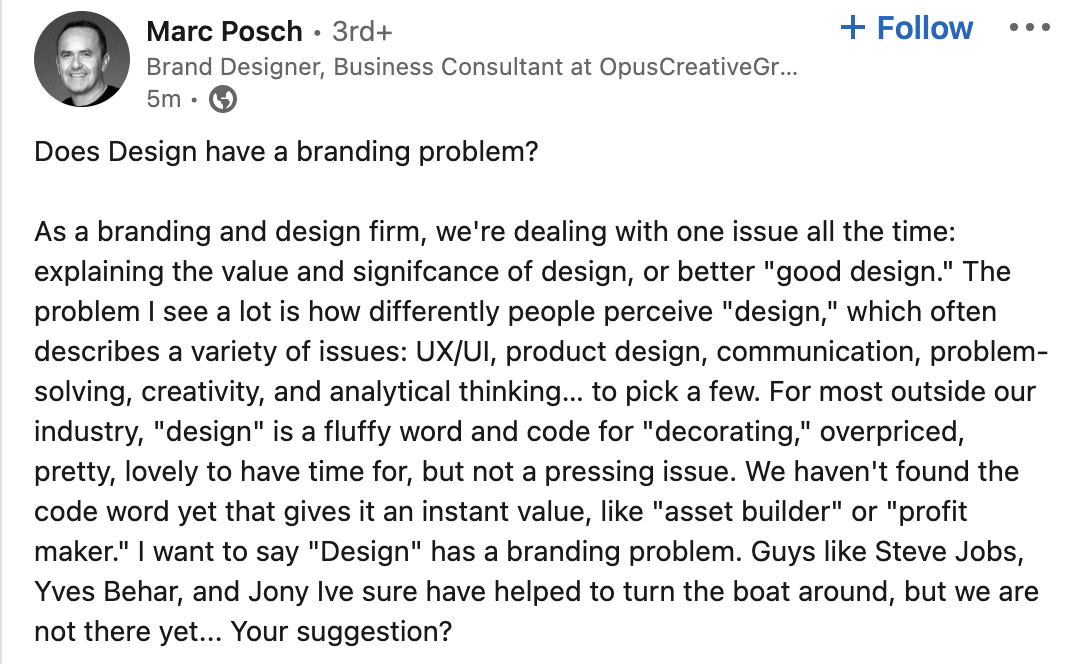 Take a look for yourself, here’s a post that appeared when I searched product design: